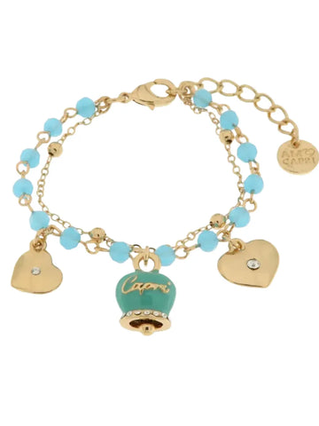 Bracciale in Metallo con campana smaltata azzurra e cuoricini pendenti - 3572184