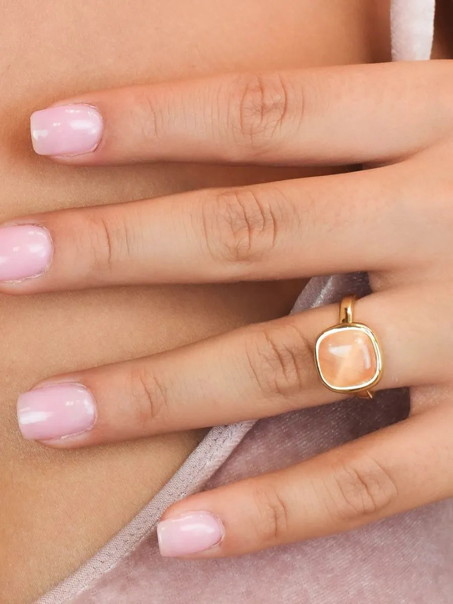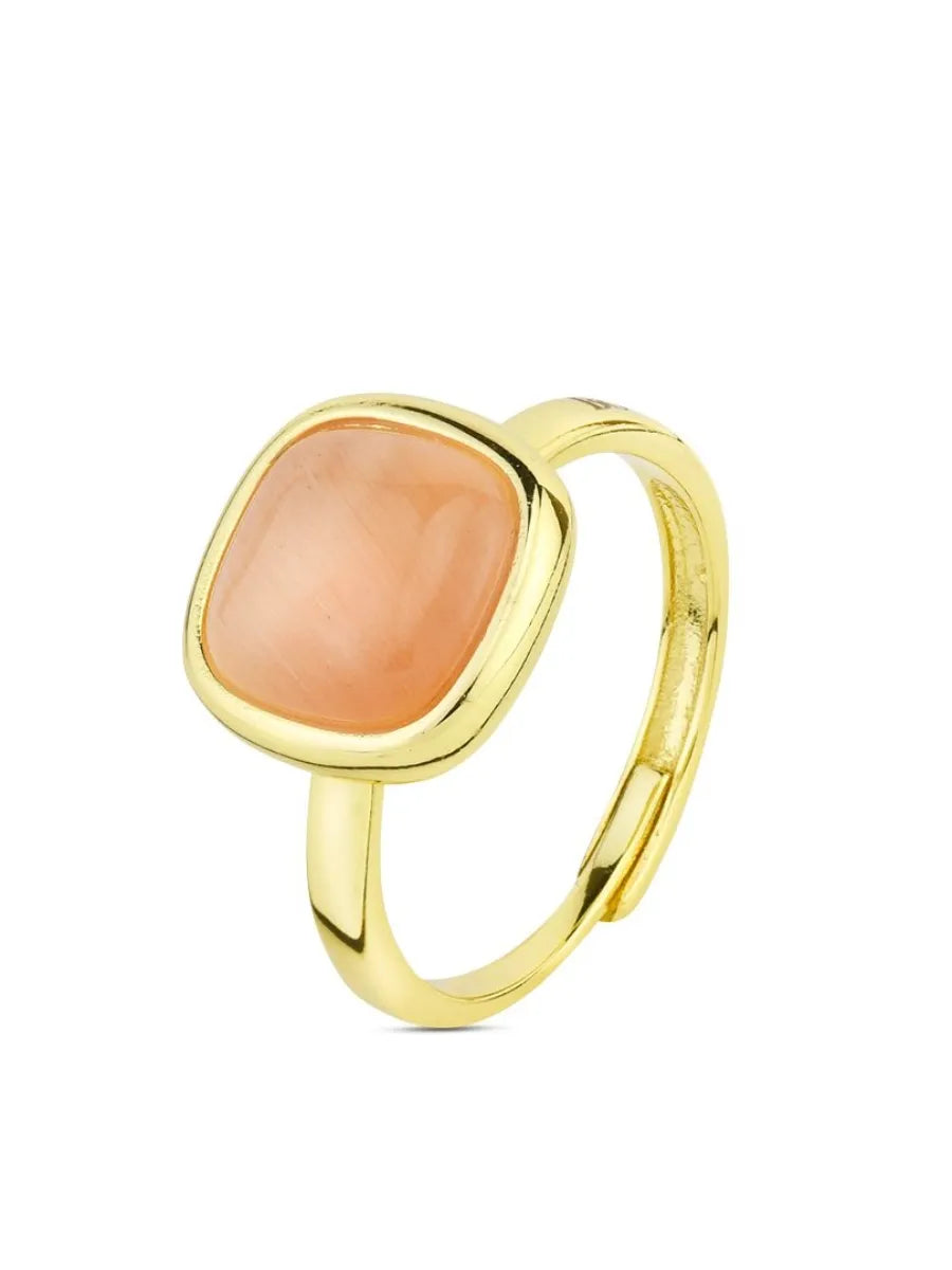 Anello placcato oro giallo con cristallo piccolo sfaccettato color miele.