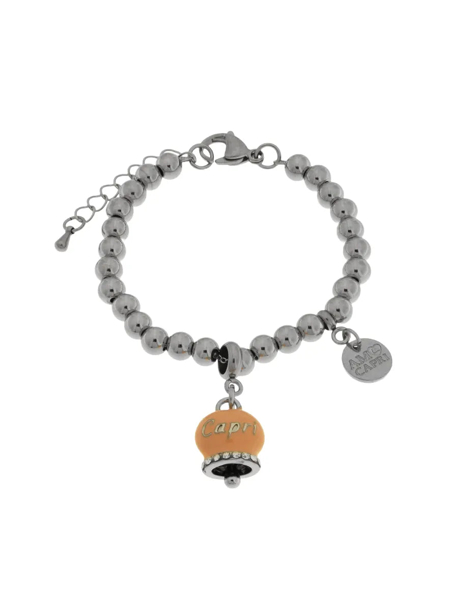 Bracciale in Acciaio campanella rosa antico con scritta Capri e zirconi - 3170744