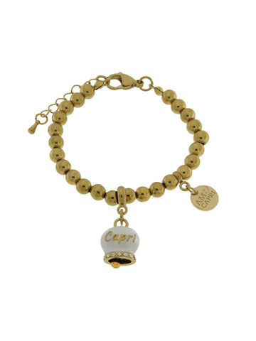 Bracciale in Acciaio con campanella bianca e oro con scritta Capri - 3170580