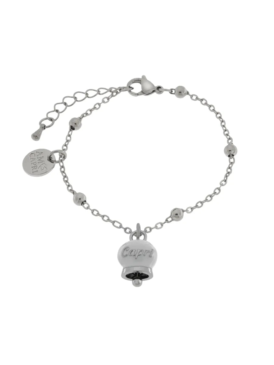 Bracciale in Acciaio con campanella pendente bianca con scritta Capri - 3170552