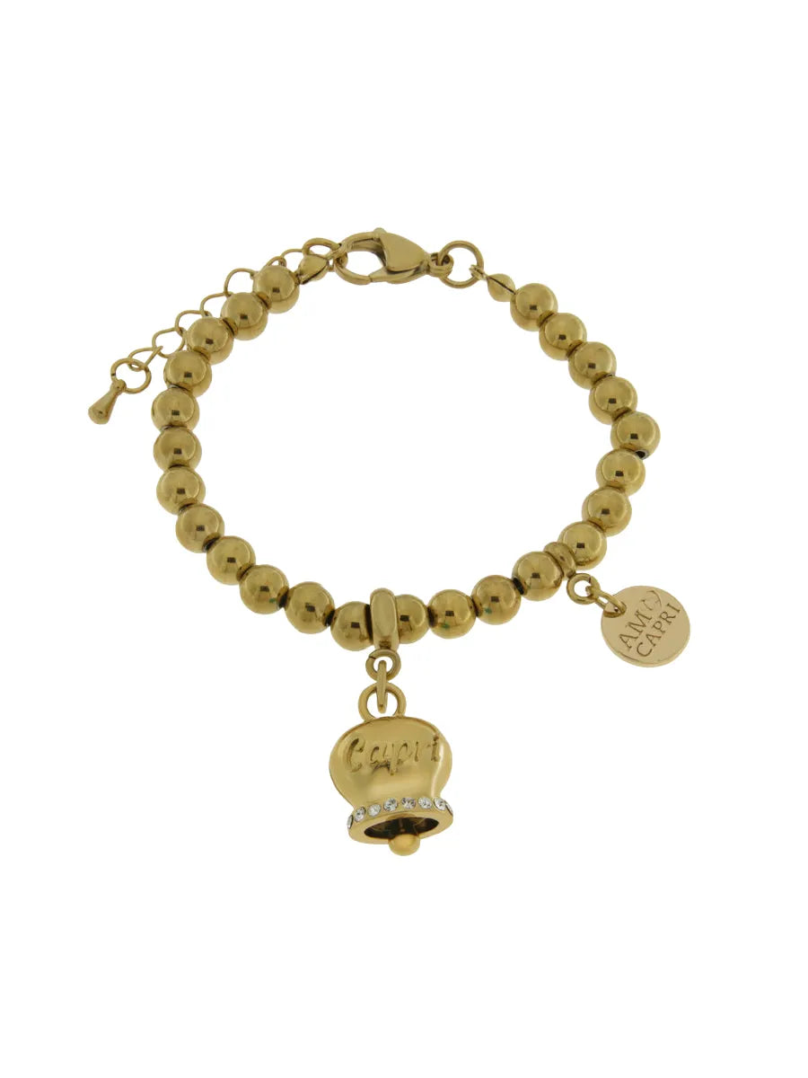 Bracciale in Acciaio con campanella placcata oro con scritta Capri - 3170579