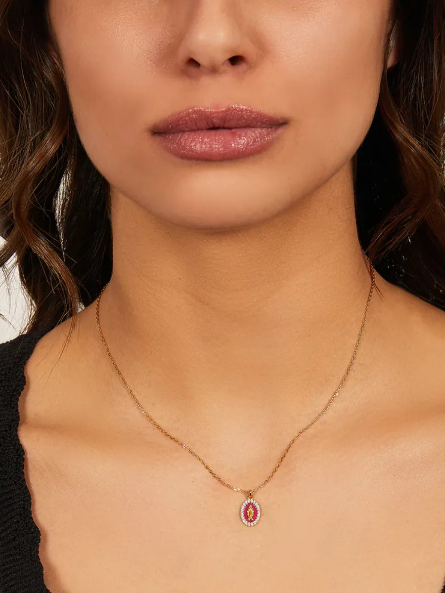collana mini medaglia miracolosa smaltata bordeaux - CLMISMGBO