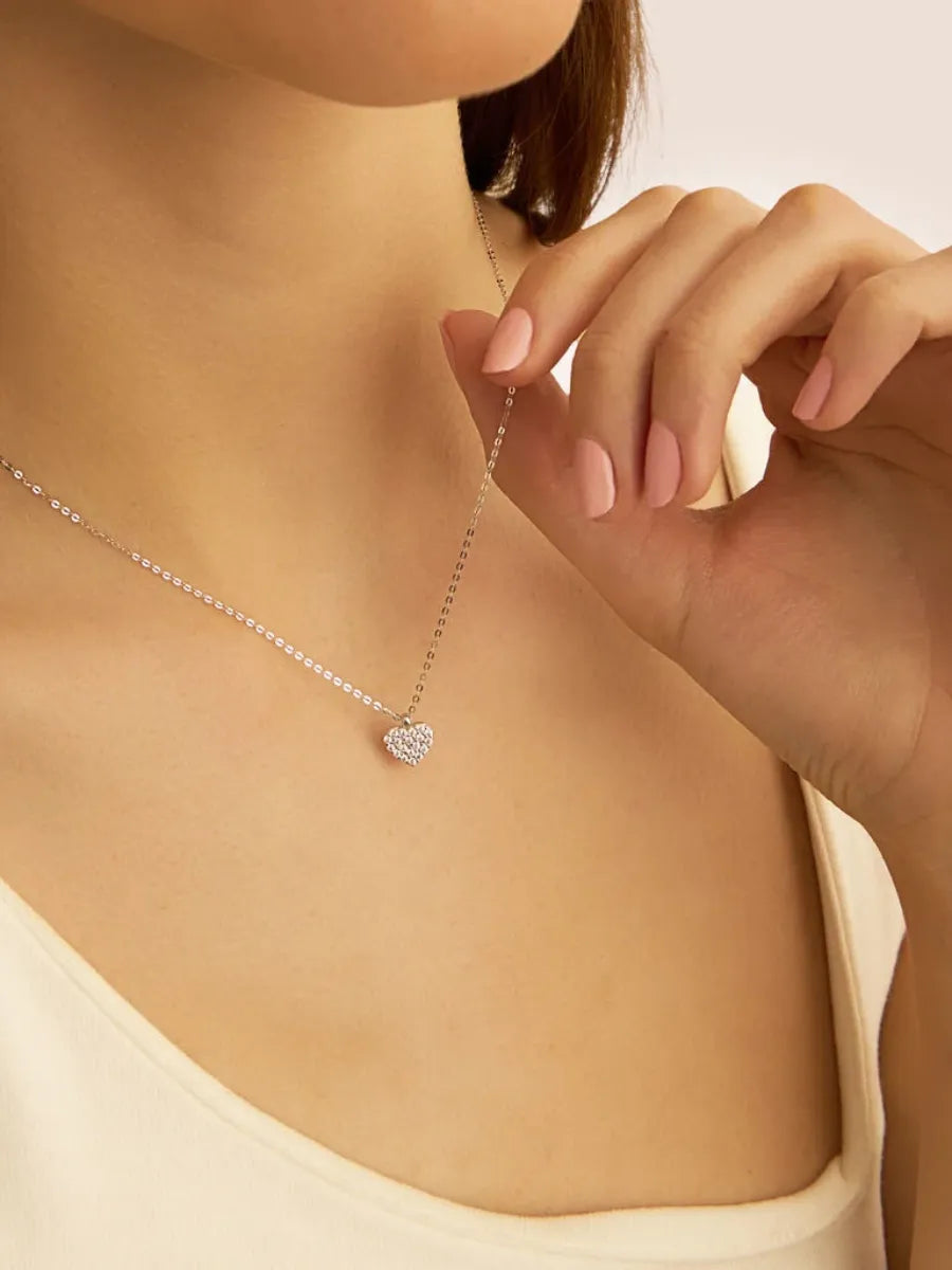 Collana Cuore Claire Oro Bianco 375/1000 Maglia Rolo Cubic Zirconia Bianco 40 + 2 cm 1411969
