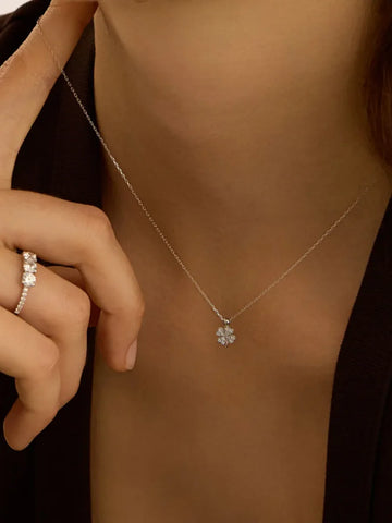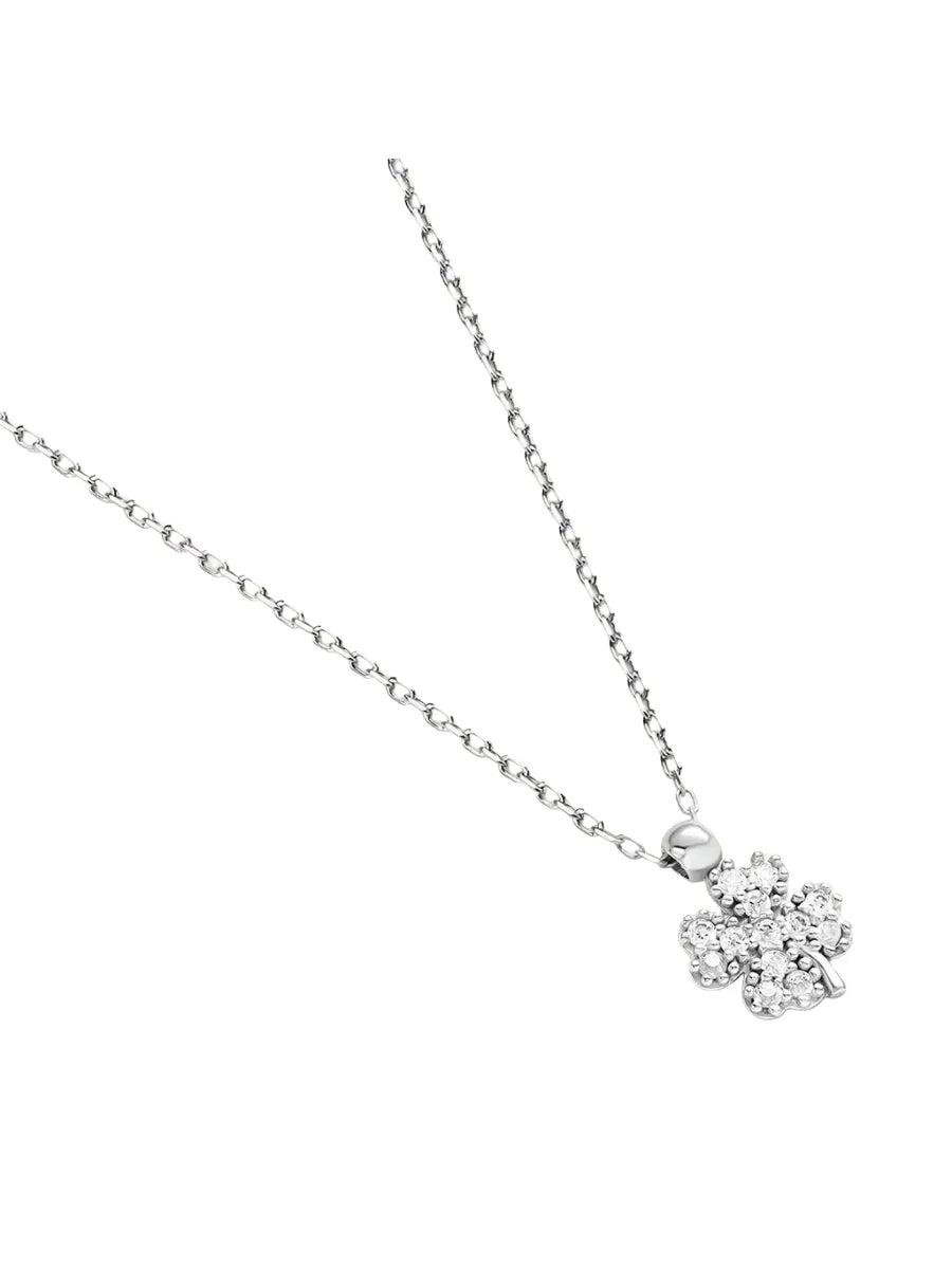 Collana Quadrifoglio Claire Oro Bianco 375/1000 Cubic Zirconia Bianco 40 + 2 cm 1424461