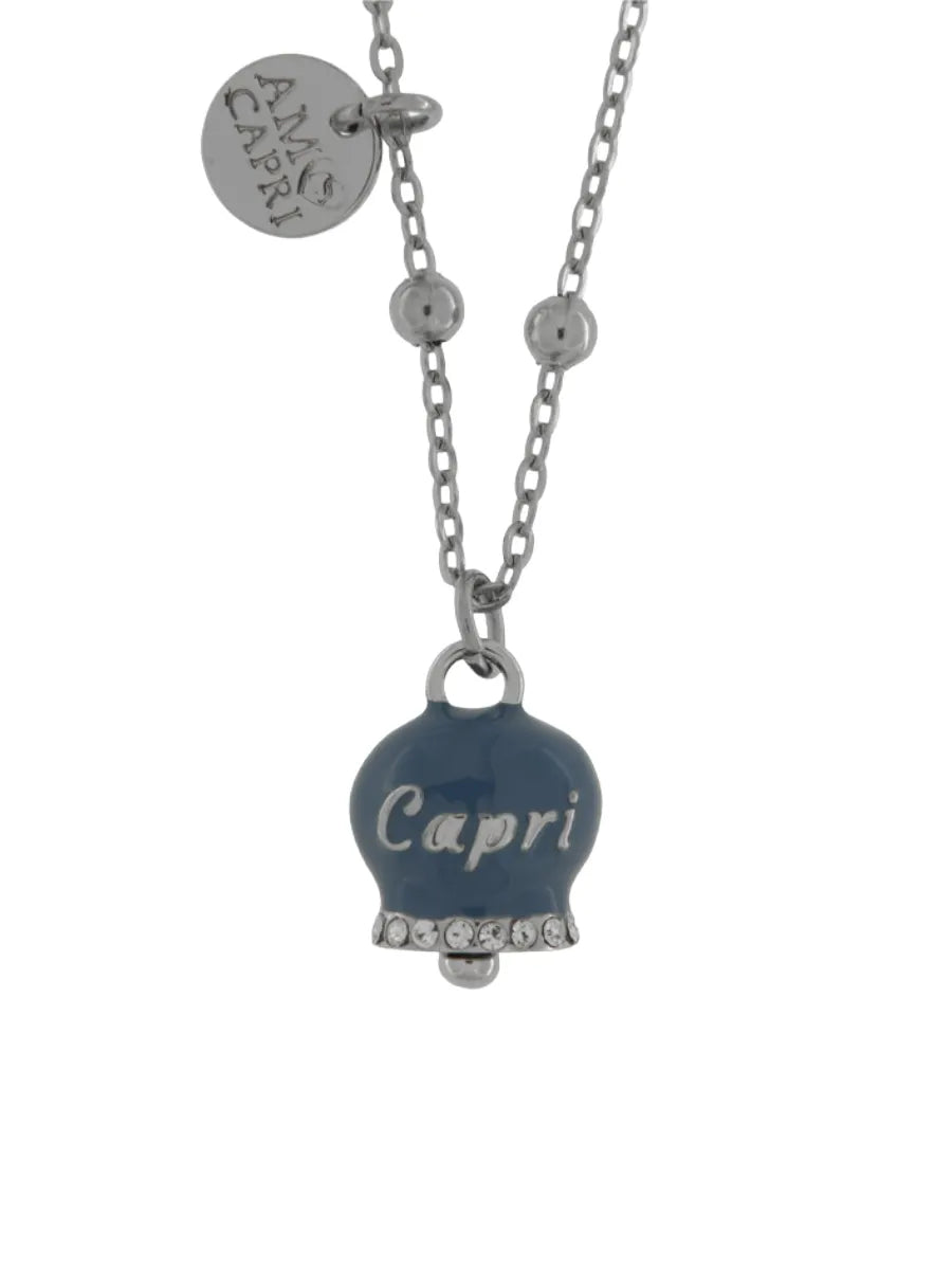 Collana in Acciaio con campanella blu cobalto con scritta Capri - 3140155