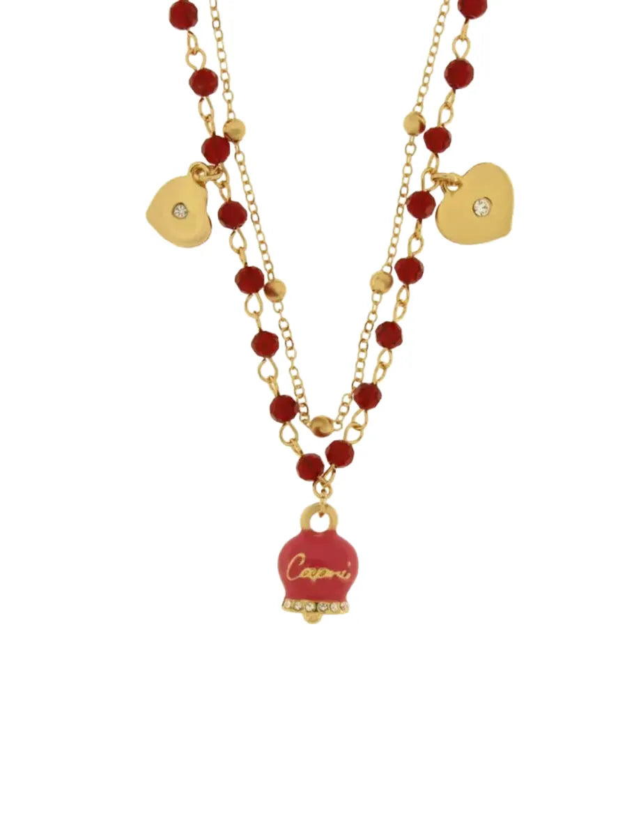 Collana in Metallo multifilo con campanella fucsia e pietre rosse - 3541494