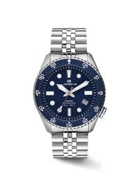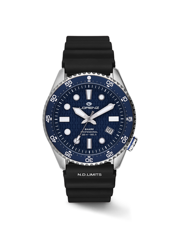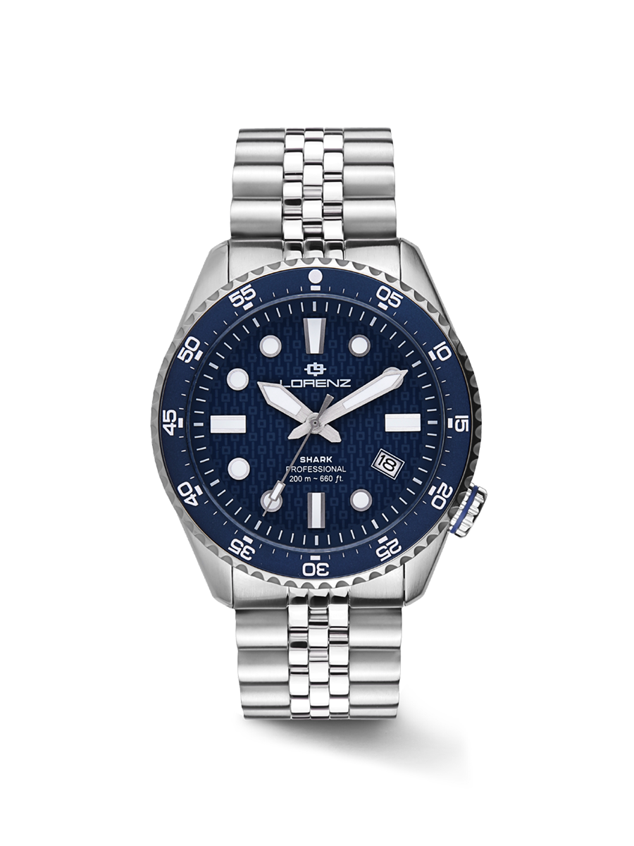 Shark 5 è realizzato in acciaio inossidabile 316L con un diametro cassa di 42 mm. Progettato per resistere alle condizioni più estreme pur mantenendo uno stile distintivo. Disponibile in cinque versioni differenti, ogni orologio presenta la corona posizionata strategicamente alle ore 4 per un comfort ottimale. La corona e il fondo a vite garantiscono un'impermeabilità fino a 200 metri e lo rendono il compagno ideale per tutti gli appassionati di immersioni. Il vetro zaffiro offre una resistenza eccezionale assicurando una visibilità perfetta in ogni situazione. Al cuore dell'orologio batte il movimento automatico Seiko NH35, preciso e affidabile. L’orologio si completa con un bracciale jubilee in acciaio e un secondo cinturino in gomma, che offre versatilità e comfort per ogni occasione, sia che tu stia esplorando le profondità marine o godendoti una giornata in città. Scegli l'orologio Lorenz Shark 5 se stai cercando una combinazione imbattibile tra stile, funzionalità e resistenza. Lo Shark 5 sarà il compagno perfetto per ogni avventura subacquea e della vita quotidiana.