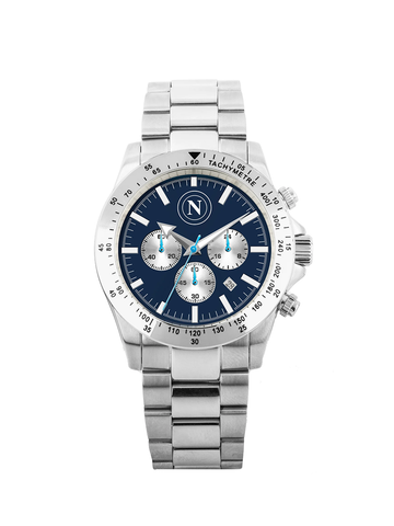 Orologio solo tempo da uomo della squadra di calcio Napoli. Orologio realizzato in acciaio 316L con cassa di 41 mm. Vetro minerale. Movimento al quarzo. Le referenza è P-N0471UB1