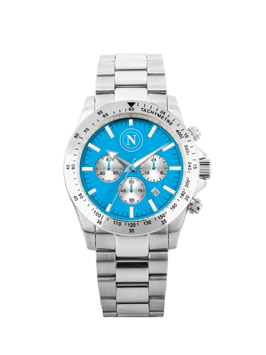 Orologio cronografo da uomo della squadra di calcio Napoli. Orologio realizzato in acciaio 316L con cassa di 42mm. Vetro minerale. Movimento al quarzo. Orologio con fondello e corona girevole. Le referenza è P-N0471UA1