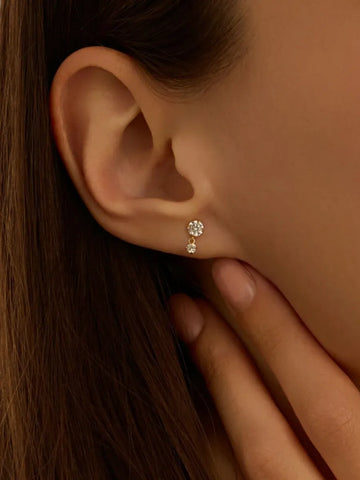 Orecchini Lobo Doppio Punto Luce Bon Ton Oro Giallo 375/1000 Cubic Zirconia Bianco 1426718