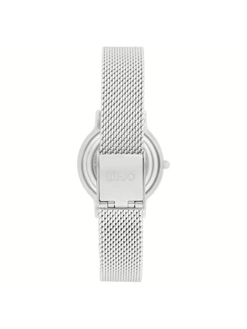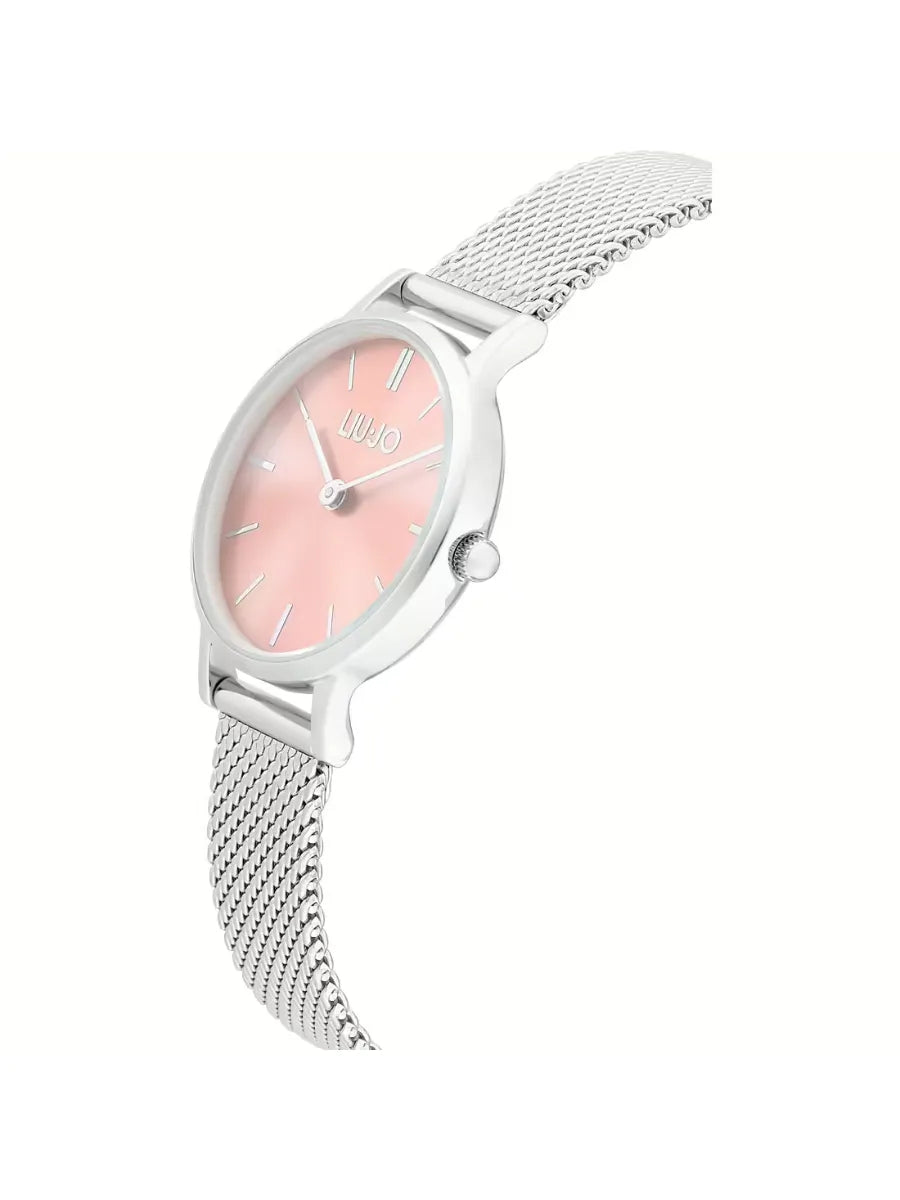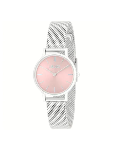Orologio da donna di LiuJo della collezione Mini Moonlight. Orologio 2 hands con movimento Miyota Cal. VJ20. La cassa è in acciaio di colore argento dal diametro 26 mm.. Il vetro è menerale. Il colore del quadrante è rosa con NO. Il cinturino è in acciaiodi colore argento. La resistenza all'acqua è di 3 ATM. La referenza è TLJ2410