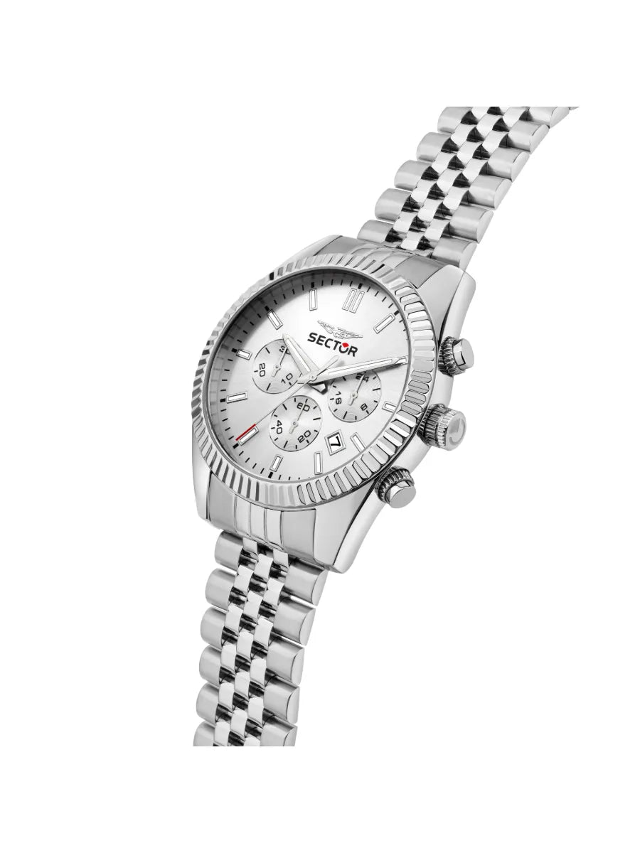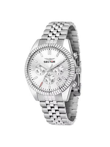 Genere : Uomo, Materiale e finitura cassa: Acciaio, Misura cassa: 41.00, Spessore cassa: 10.70, Finitura cassa: Lucido, Colore cassa: Silver, Vetro: Vetro minerale, Materiale cinturino: metallo, Colore cinturino: Silver, Chiusura: Fibbia diver con blocco sicurezza, Water resistant: 5 atm, Garanzia: Ufficiale 3 anni Sector, Confezione: Originale Sector