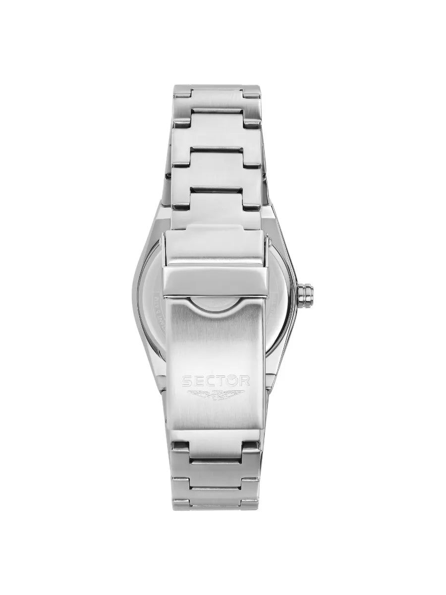 Genere : Donna, Materiale e finitura cassa: Acciaio, Misura cassa: 34.00mm, Finitura cassa: Lucido, Colore cassa: Silver, Vetro: Vetro minerale, Materiale cinturino: Acciaio, Colore cinturino: Silver, Chiusura: Fibbia diver con blocco sicurezza, Movimento: Quarzo, Water resistant: 5 atm, Garanzia: Ufficiale 3 anni Sector, Confezione: Originale Sector