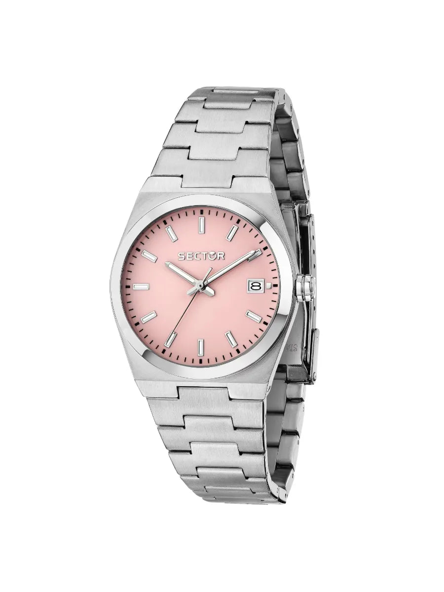 Genere : Donna, Materiale e finitura cassa: Acciaio, Misura cassa: 34.00mm, Finitura cassa: Lucido, Colore cassa: Silver, Vetro: Vetro minerale, Materiale cinturino: Acciaio, Colore cinturino: Silver, Chiusura: Fibbia diver con blocco sicurezza, Movimento: Quarzo, Water resistant: 5 atm, Garanzia: Ufficiale 3 anni Sector, Confezione: Originale Sector