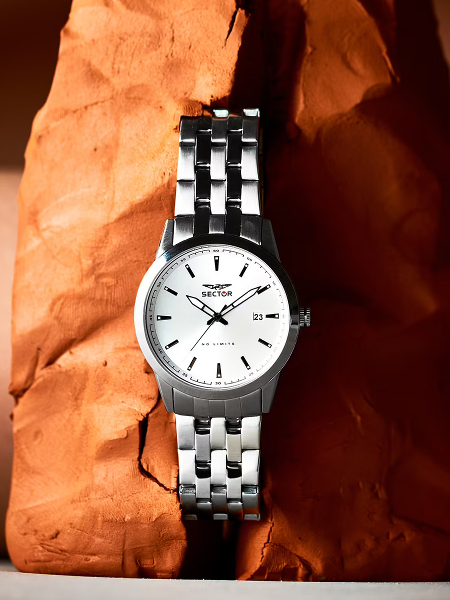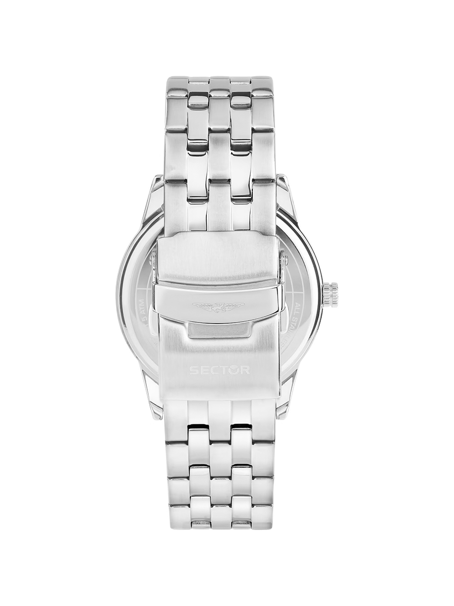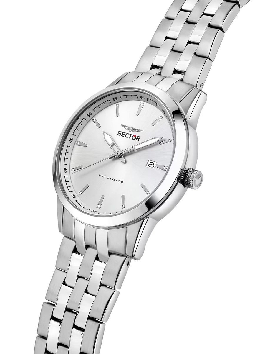 Genere : Uomo, Materiale e finitura cassa: Acciaio, Misura cassa: 41mm, Spessore cassa: 10,20, Finitura cassa: Lucido, Colore cassa: Silver, Vetro: Vetro minerale, Materiale cinturino: metallo, Colore cinturino: Silver, Chiusura: Fibbia diver c, Pulsanti e blocco di sicurezza, Movimento: Quarzo, Water resistant: 5 atm, Garanzia: Ufficiale 3 anni Sector, Confezione: Originale Sector, Sector experience: No Limits
