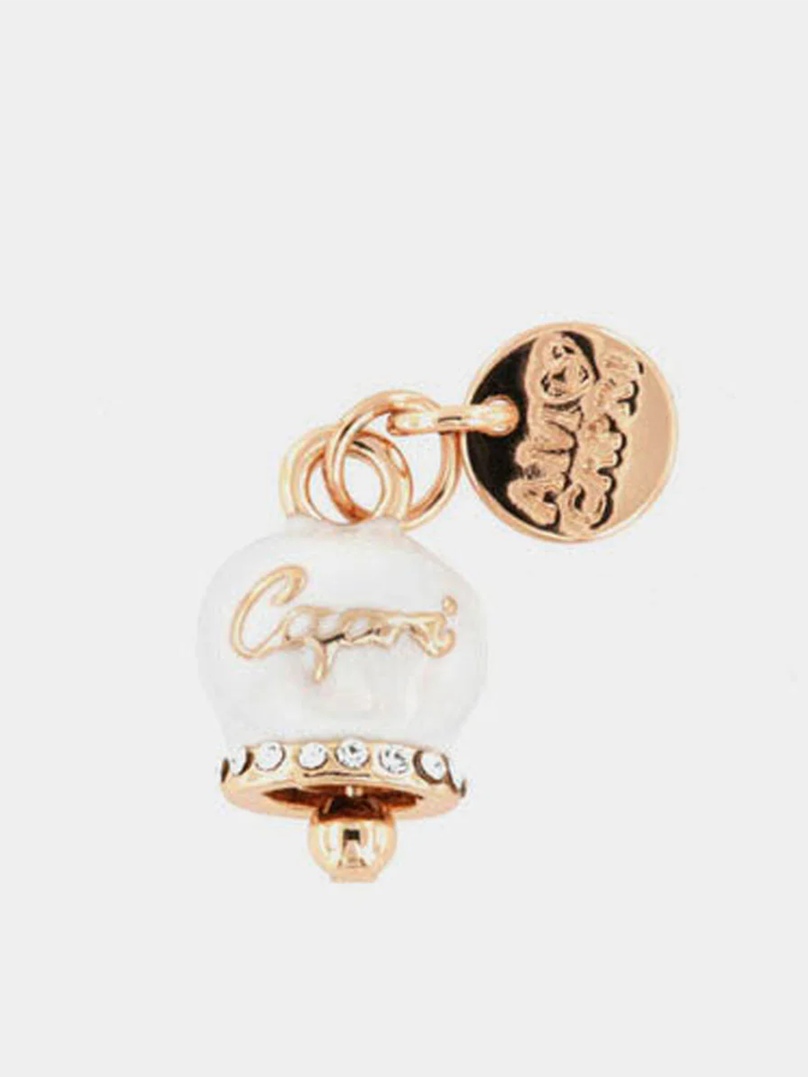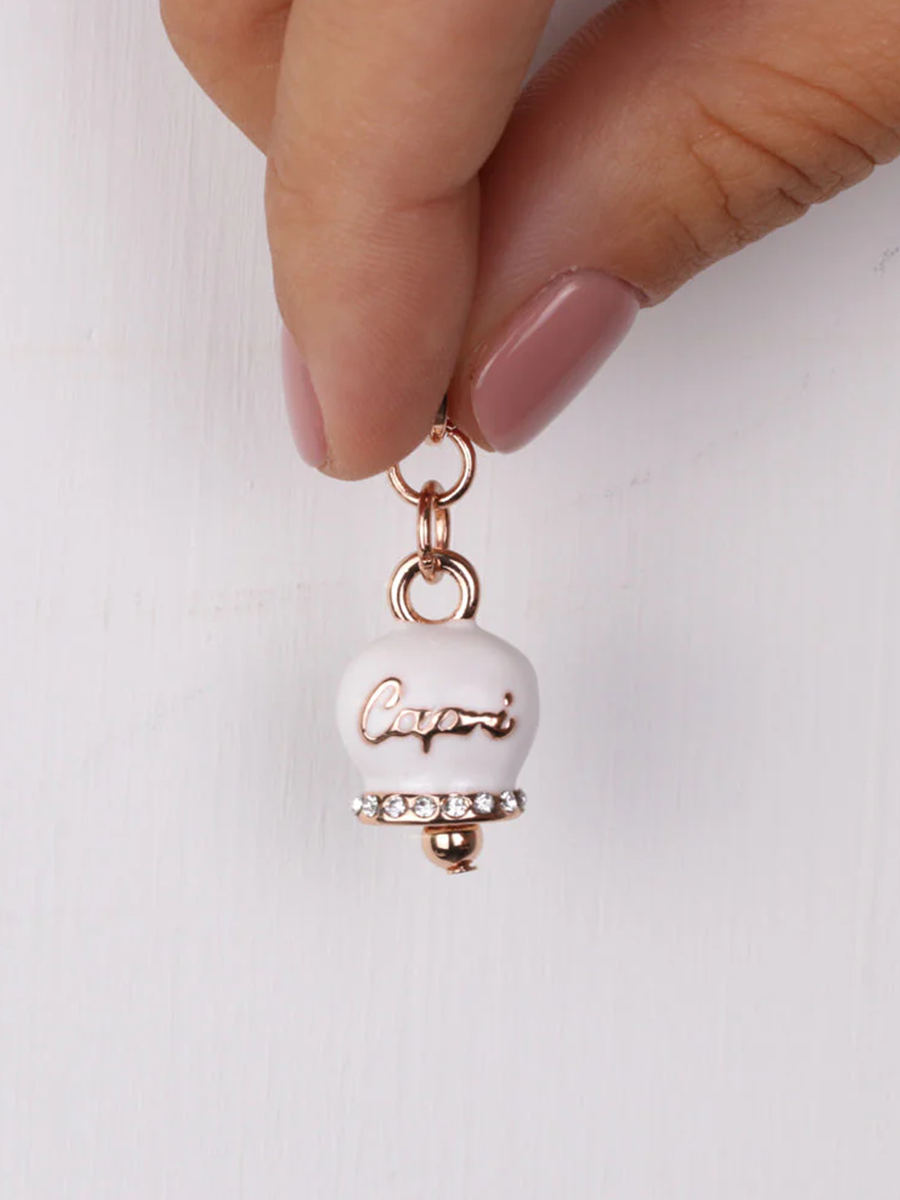 Collana in Metallo con campanella portafortuna pendente impreziosita da smalto bianco e cristalli
