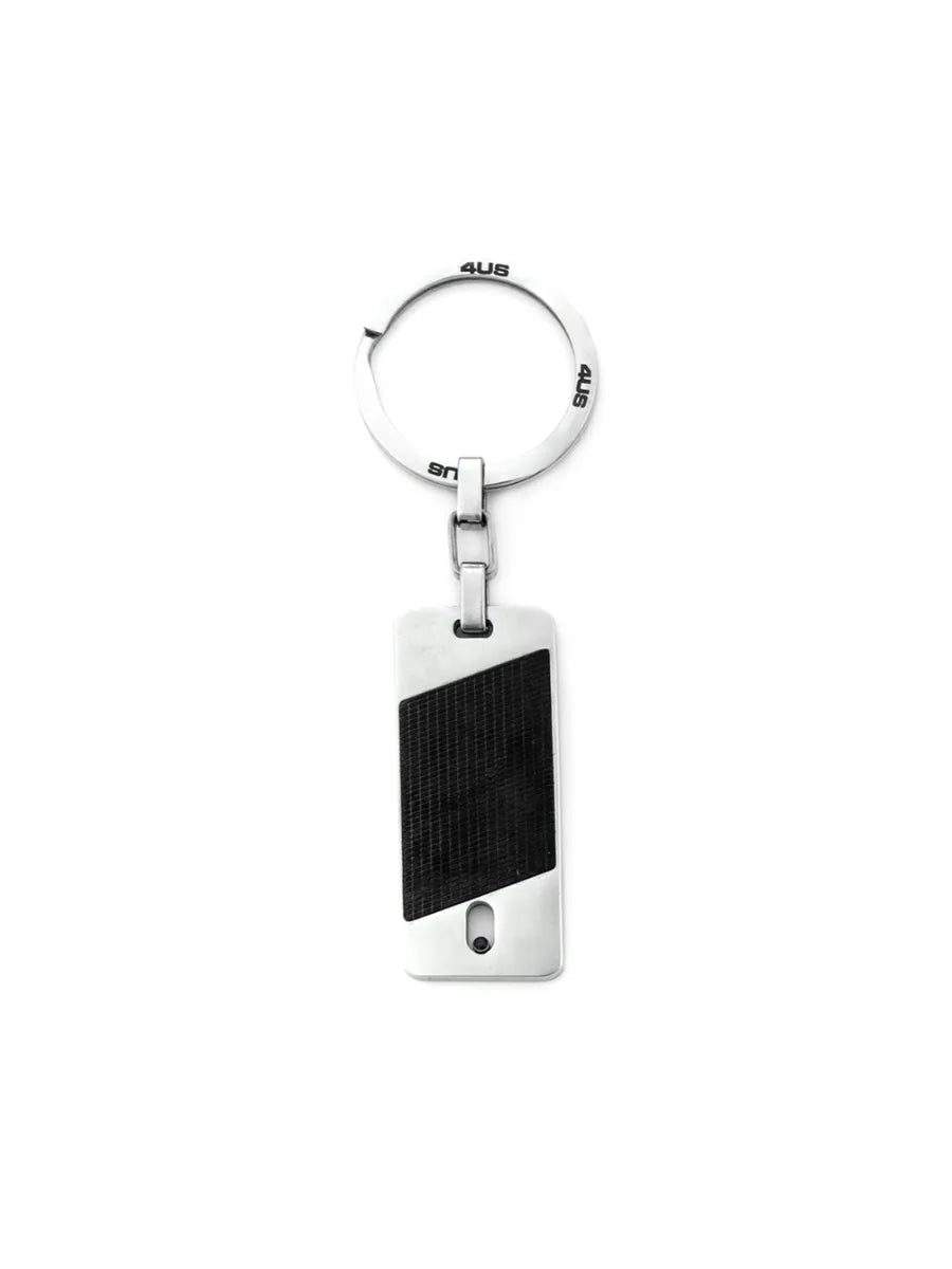Portachiavi in acciaio inox con texture nera e zircone nero nella parte bassa.