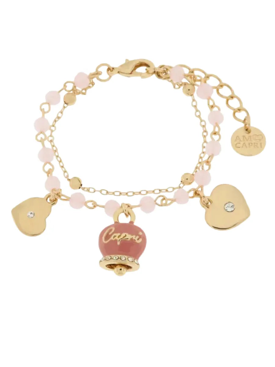 Bracciale in Metallo con campana smaltata rosa e cuoricini pendenti - 3572183